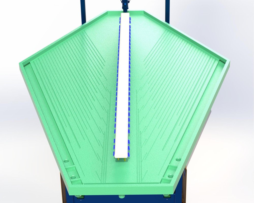 A custom-designed surface optimized to achieve high efficiency even with high-density, low-grade ores such as gold.