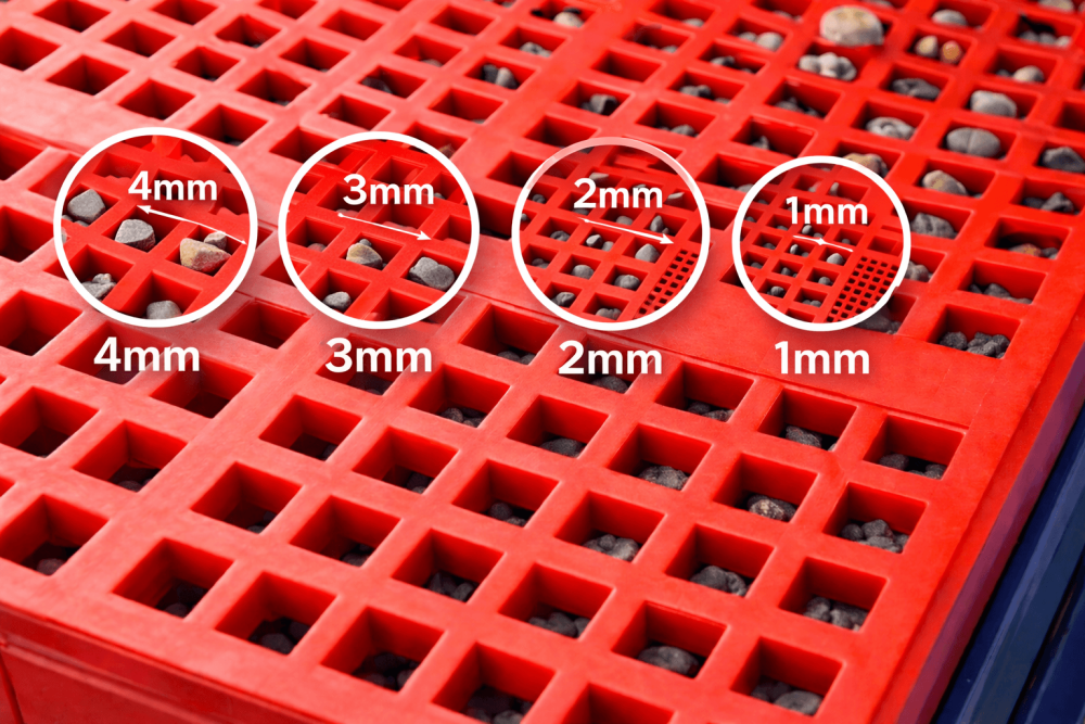 1mm ve 4mm yüksek dayanımlı poliüretan elekler uzun süre çalışma imkanı sunmaktadır.